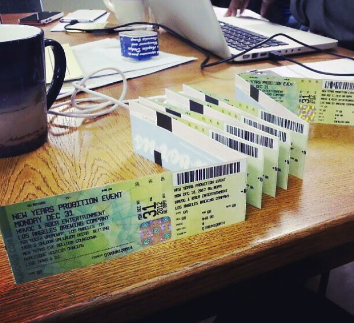 "Oh Look What Finally Showed Up On January 4th... Our New Year's Eve Tickets"