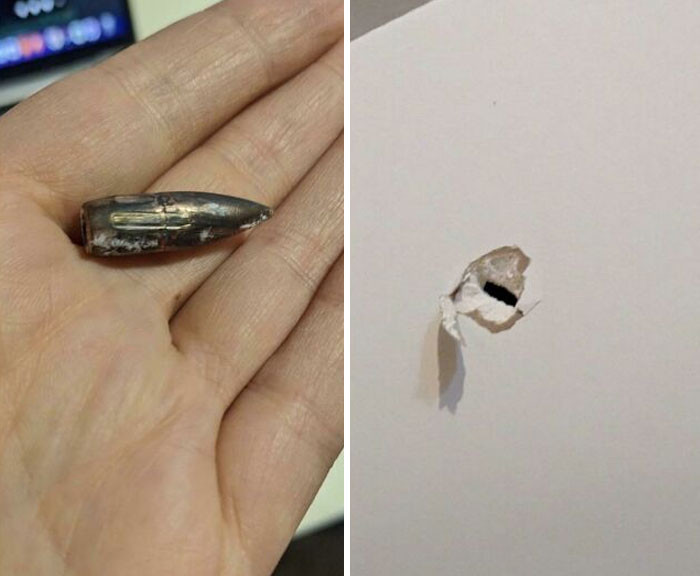 "Had Two Stray Bullets Hit My House Just After Midnight On New Year's Eve. Through A Shower And Garage"