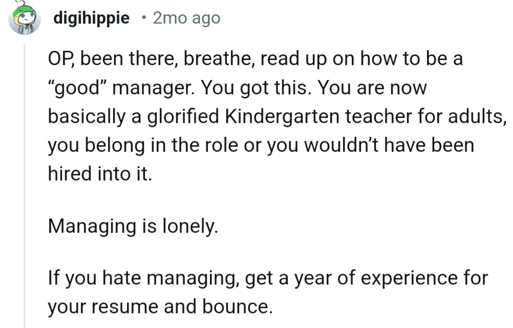 OP realized that management wasn’t just about better pay. It was about navigating human behavior, often at its worst, and trying to steer a ship that sometimes felt determined to sink itself.