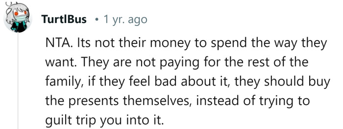 Christmas is a time for giving; that much is true, but where do you draw the line with who is on your list to buy for? Reddit user u/Happy-Uncle recently shared a story on this topic in the r/AITA (Am I The A**hole?) subreddit.