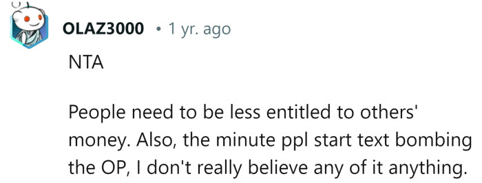 "No one is entitled to your money or efforts."