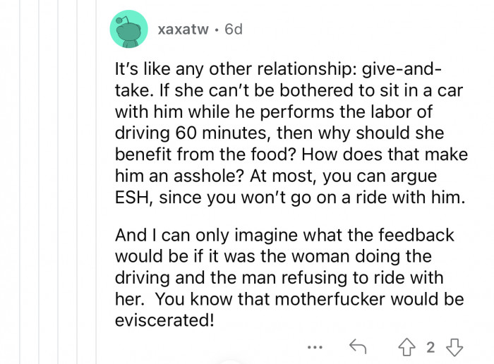 "At most, you can argue ESH, since you won’t go on a ride with him."
