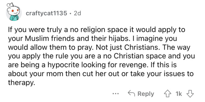 For the Redditor, her decision to ban religious symbols may reflect a deeper struggle with her identity and her relationship with her mother's beliefs. Understanding this dynamic is crucial for resolving conflicts and fostering healthier relationships.