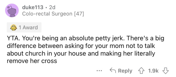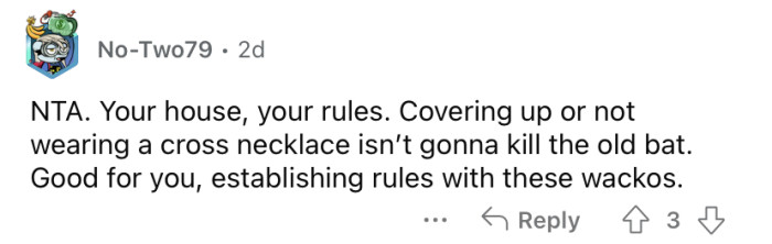 Redditor Asks If She's An A**hole For Banning Religion In Her Home And Forcing Her Mother To Cover Up Her Cross Necklace