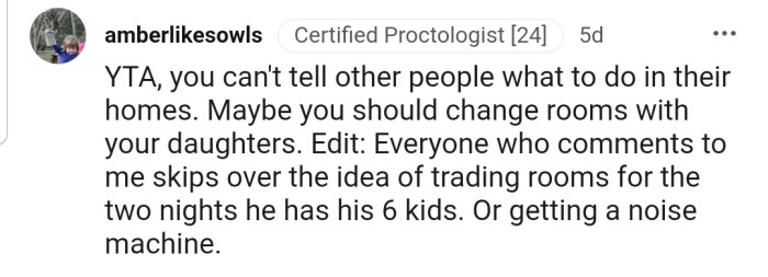 With their little tribe, they have managed to create a cozy space for themselves that everyone seems to be content with. OP's four daughters share a large room, while his two sons occupy another.