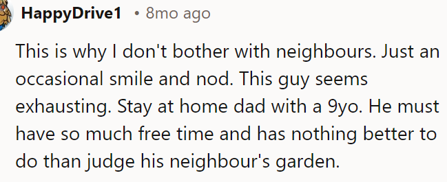 "His response to this was to call me lazy and remind me of the potential HOA violation."