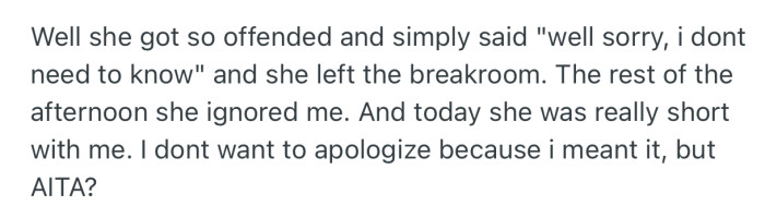 Now the whole question is whether her response was a long overdue boundary, or a little too sharp for the office vibe.