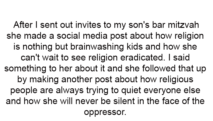 AITA For Not Inviting My Atheist Niece To My Son's Bar Mitzvah