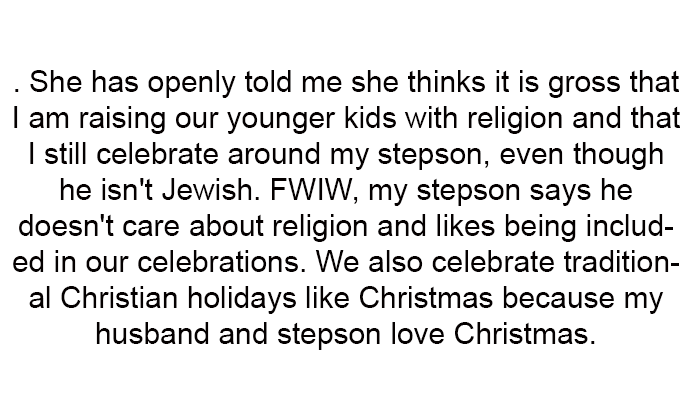 In a heartfelt post on Reddit, a mother of three finds herself caught in a difficult situation regarding her son's upcoming bar mitzvah. The mother, who is raising her children in the Jewish faith, has a 17-year-old stepson from her husband's previous marriage.