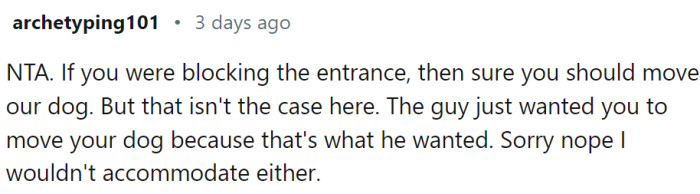 Woman Asks If She Was Inconsiderate For Not Moving Her Dog For Canine-Fearing Man Who Could Easily Go Around
