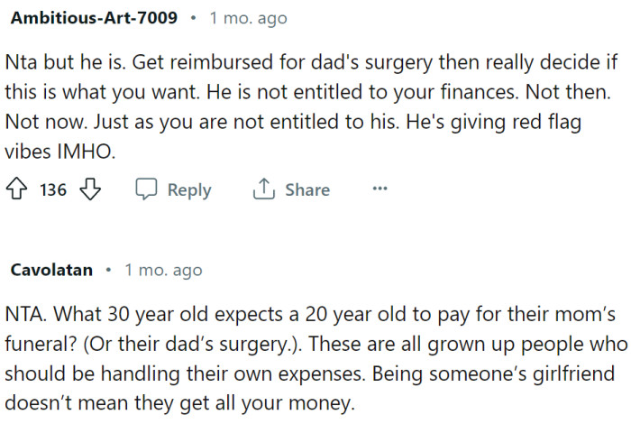 Entitled Older Boyfriend Expects Girlfriend To Pay Surgery For His Father Because She Didn't Pay For His Mother's Funeral