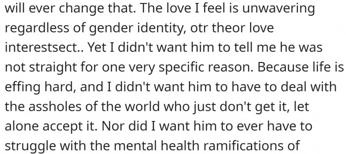 OP does have a problem, but it is not something that can’t be worked out. They are clearly in a loving relationship, and from what we could understand from their posts, their family is aware of their sexual orientation and is okay with it.