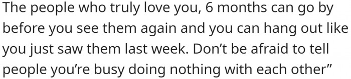 "Don’t be afraid to tell people you’re busy doing nothing with each other."
