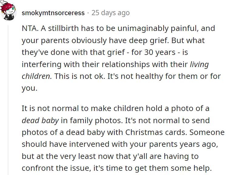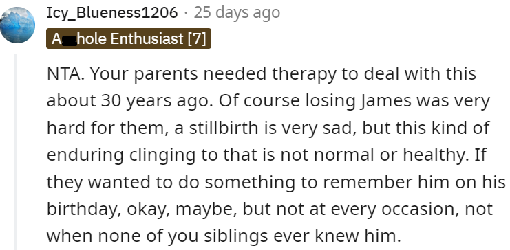 Reddit.comOP’s parents had a stillborn child decades ago. But they still haven’t gotten over him to this day