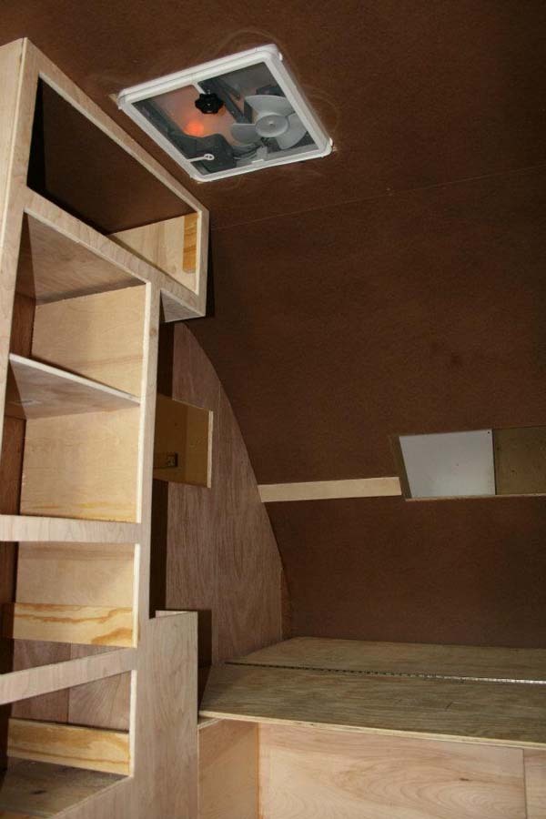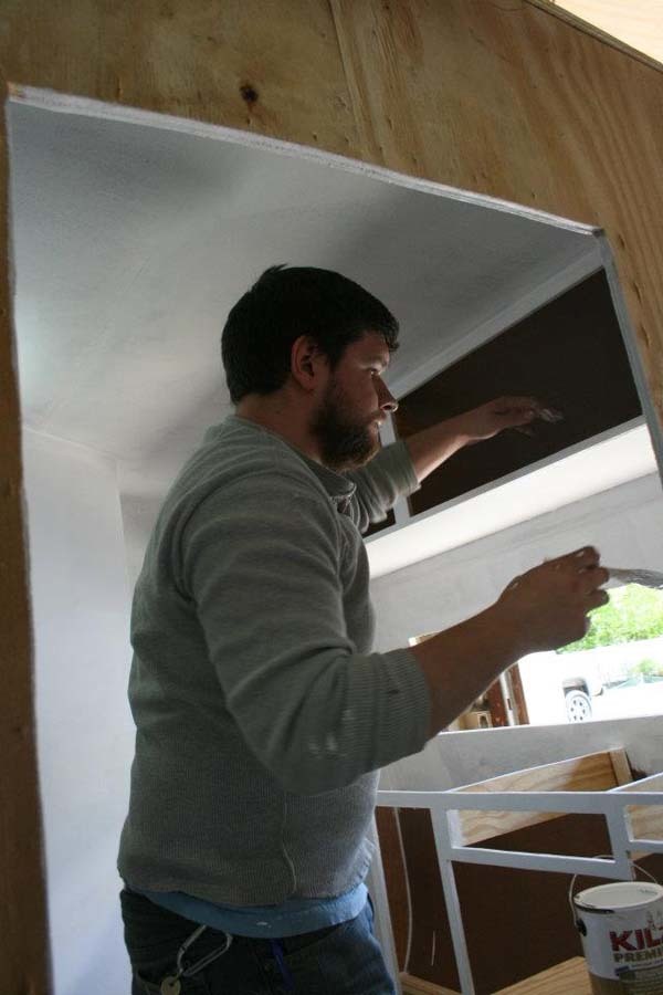 "They also added a ceiling fan. Next, they caulked and puttied the inside of the camper."