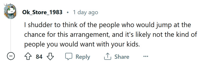 "I shudder to think of the people who would jump at the chance for this arrangement."