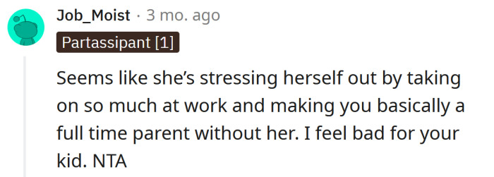 Reddit/Happy_Twist_7156The Redditor explained that he and his wife are both very career driven.