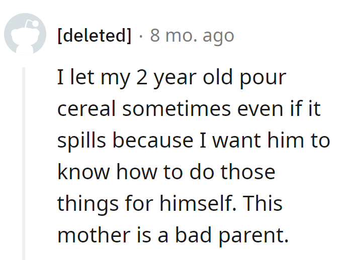 Now it's clear: parenting is a tightrope walk between safeguarding and smothering. OP's tale serves as a quirky reminder: sometimes, the best way to keep a kid safe is to let them pour their own cereal.