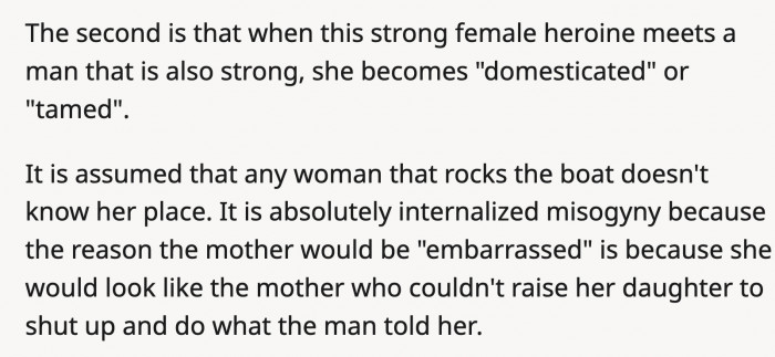 The picture is getting clearer, and mom has a lot of ingrained internalized misogyny to unlearn.