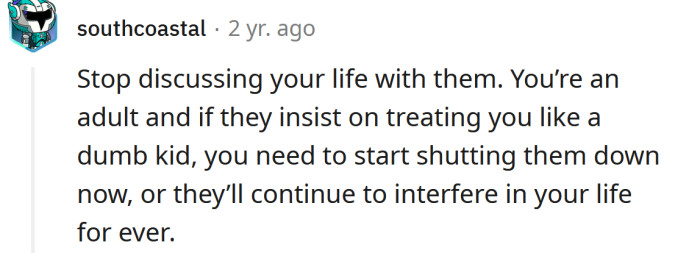 "If they insist on treating you like a dumb kid, you need to start shutting them down now."