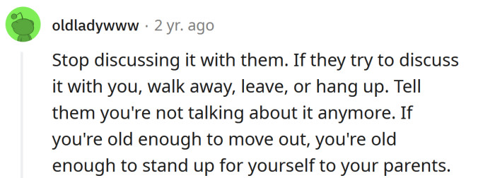 "If you're old enough to move out, you're old enough to stand up to your parents."
