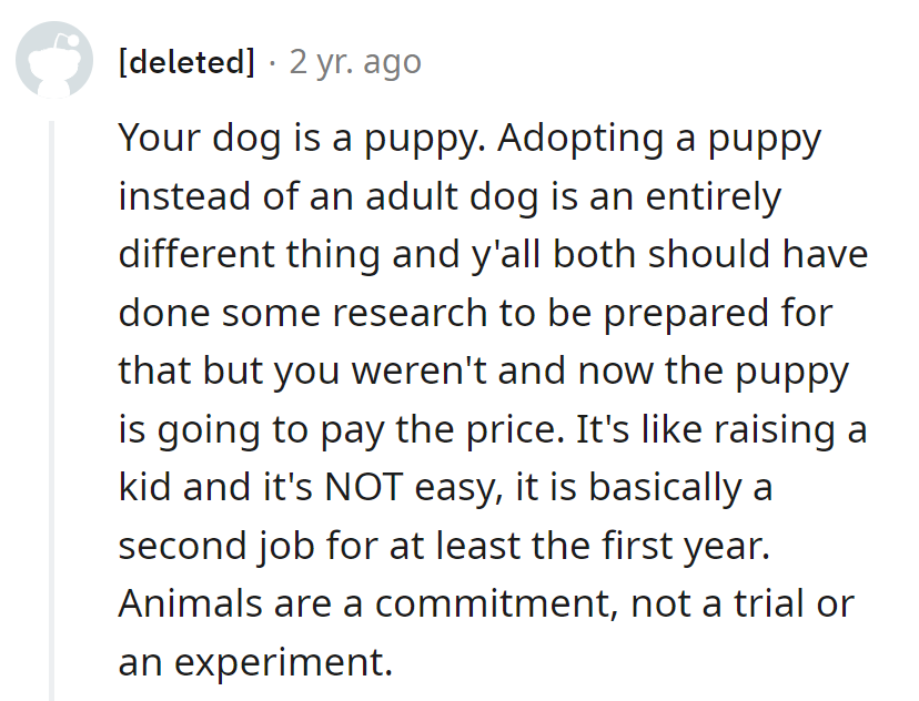 RedditWhen they got a puppy, OP's husband finds her stressful, and wants to rehome her. OP isn't worried; finding her a good home would be easy.
