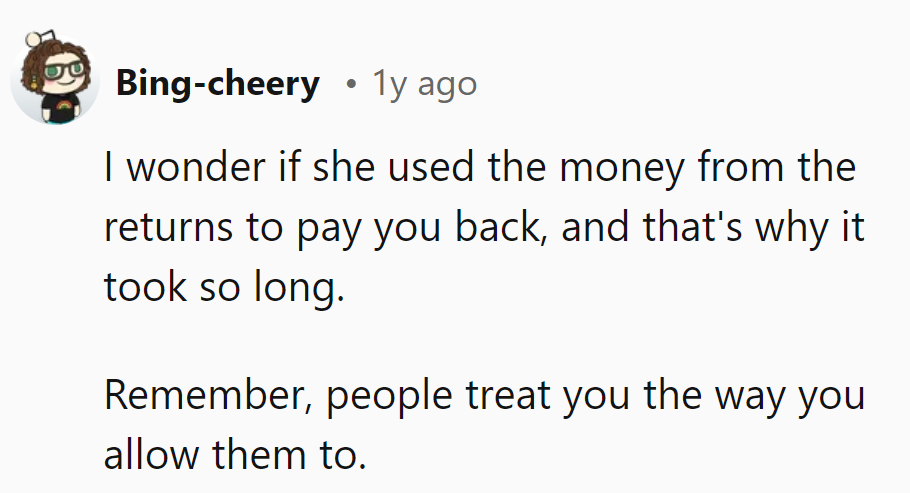 The friend, seemingly unconcerned about the cost or effort involved, not only postponed paying back the money but also asked for more favors. On top of that, she made light of her friend's need for the money, questioning whether they were really that desperate for cash.