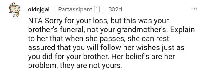 One Redditor, however, had to go against her family’s traditions to follow her brother’s funeral wishes, and this did not sit well with her grandmother.