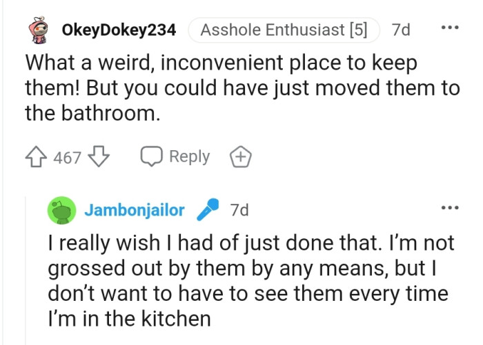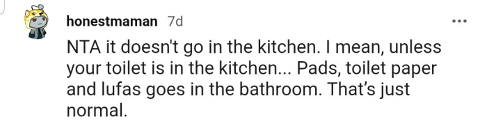 "NTA it doesn't go in the kitchen. I mean, unless your toilet is in the kitchen"