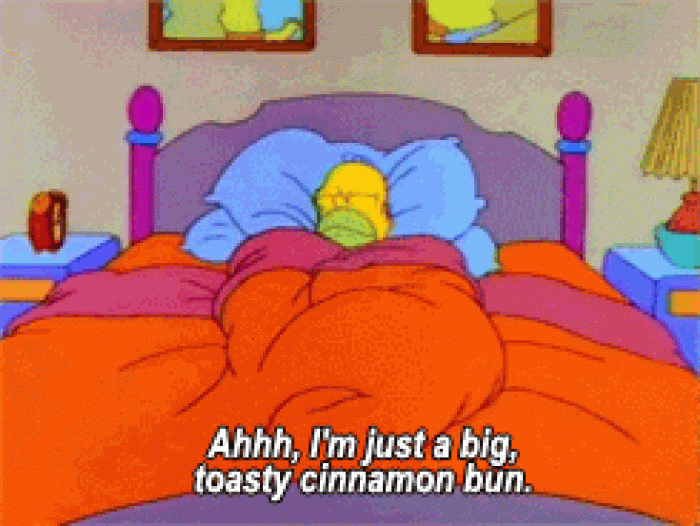 “Make pancakes.Sounds simple enough, right? I don’t know why, but I always end up burning them, getting uneven coloring, or having them end up raw in the middle.Did I also mention I’m in culinary school?”3. Who really wants to get out of bed? Sleeping and snuggling is where it's at.