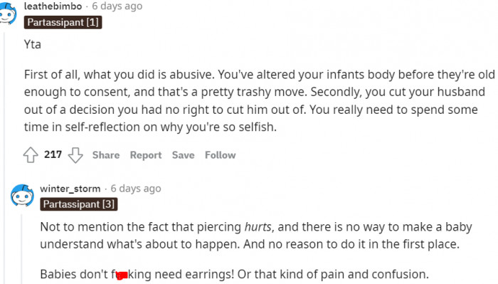 Reddit Users Are Furious With a Woman Who Went Behind Her Husband’s Back to Pierce Her Daughter’s Ears and Landed Herself in Big Trouble