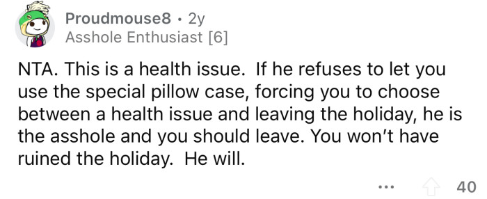 During their visit, the OP purchased a special pillowcase online. She has an autoimmune skin condition, which tends to flare up whenever she sleeps on certain types of fabric.
