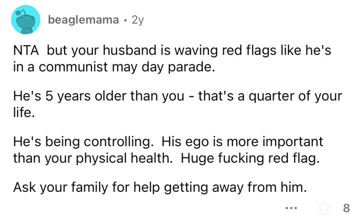 "Your husband is waving red flags like he's in a communist May Day parade."