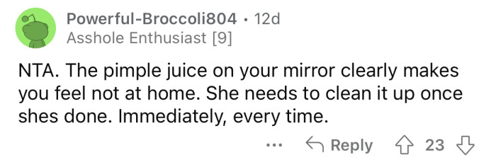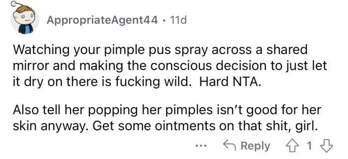 Redditor Asks For Advice After She Discovered Roommate Popping Pimples On The Bathroom Mirror