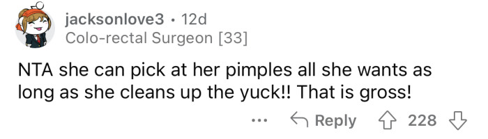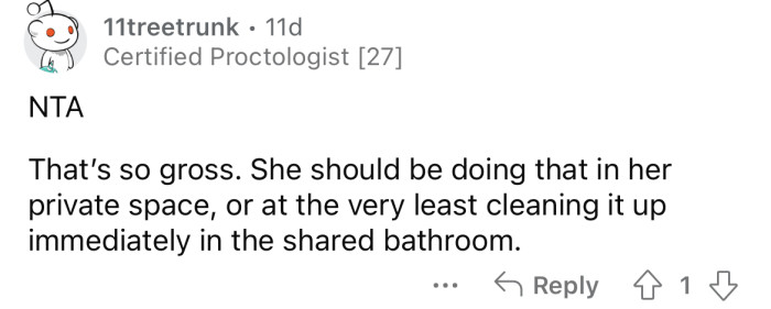 What's your take on this situation? Do you think the OP is being too harsh on the roommate, or is it entirely reasonable that she would be upset about such a gross habit?