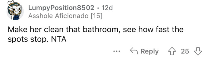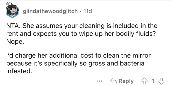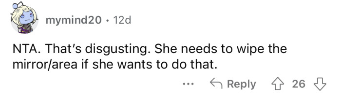 "If she is going to do that, then she is responsible for cleaning the mirror."