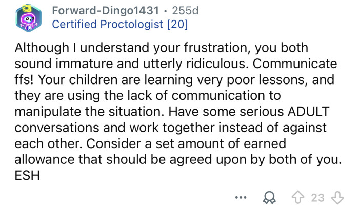 The OP, a 32-year-old father of four, explained that his two oldest sons, aged 14 and 12, receive weekend pocket money from their mom. The problem is that this arrangement was never discussed, agreed upon, or clearly communicated to him.