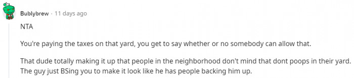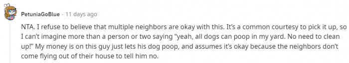 "In what world would anyone be like 'go ahead and let your dog shit in my yard'?"