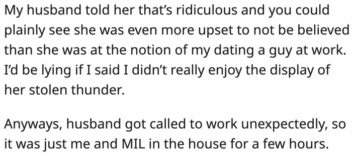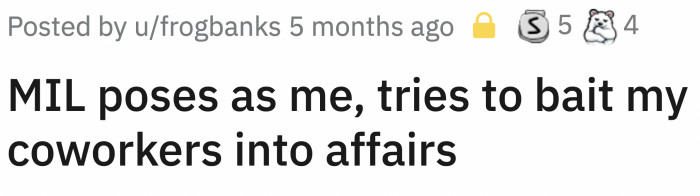 OP’s Mother-In-Law Poses As Her And Tried To Ruin Her Marriage By Baiting Co-Workers To Have An Affair