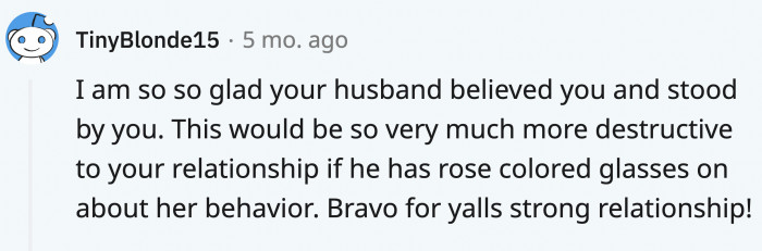 It was a great thing that OP has a healthy relationship with both her husband and her co-workers. The relentlessness of her MIL to break them apart, not to mention her denial about her wrongdoings, doesn’t deserve to win.