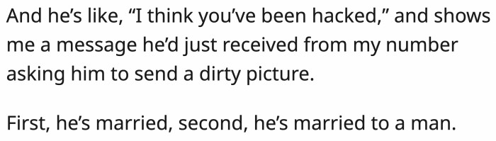 OP then caught her MIL red-handed with her phone, trying to bait other guys into having an affair. What the MIL didn’t know was that the guy she sent the text to was already married and was also gay.