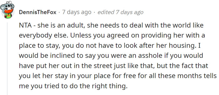 RedditBut suddenly, she stopped paying him rent because she felt like she was paying child support to herself: