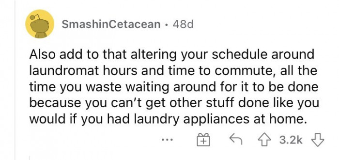 8. You can't afford a washing machine, so you spend money every day to do your laundry