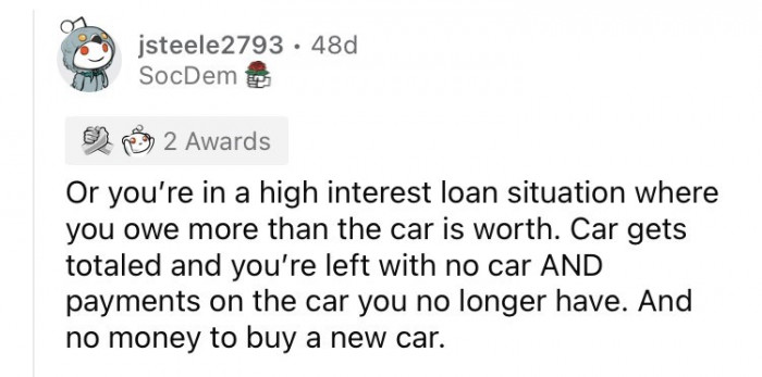7. If your old beater gets damaged in a car accident, insurance companies will pay you peanuts and leave you to your fate