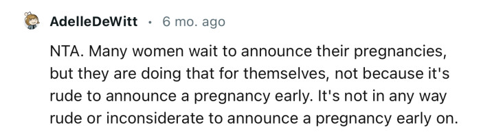 "It's not in any way rude or inconsiderate to announce a pregnancy early on."