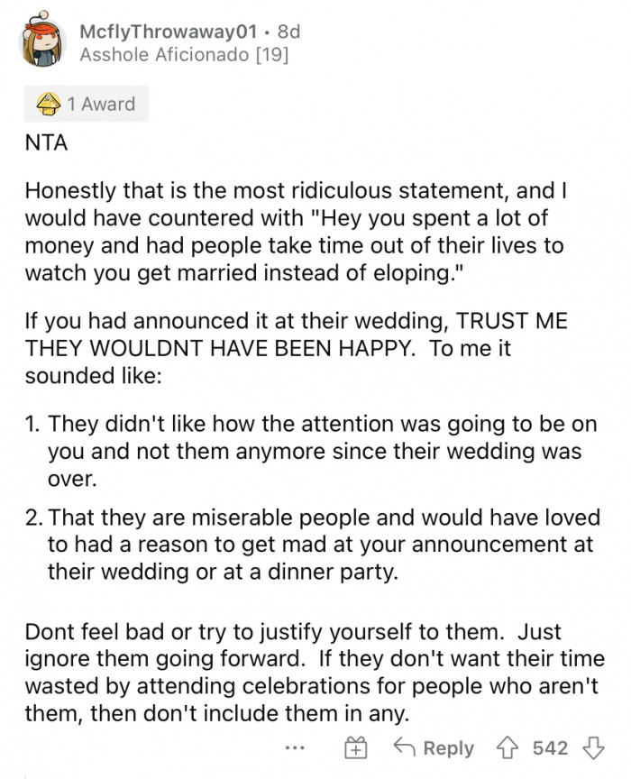 The OP's brother and SIL told her that she was wasting everyone's time by hosting another event just to make this announcement when she could have done it at the wedding, so, the OP asked the Reddit community for advice. Keep scrolling to find out how they reacted.