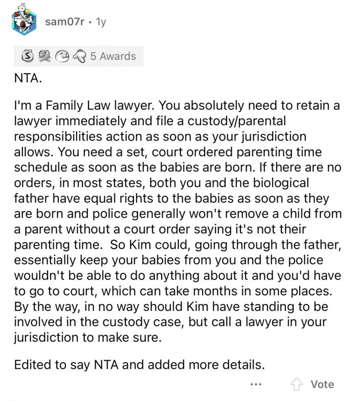 Reddit: r/AmItheA**holeOP later discovered that she was having twins, and when her ex's partner found out, she had a mental breakdown.