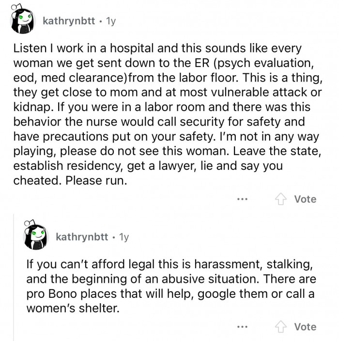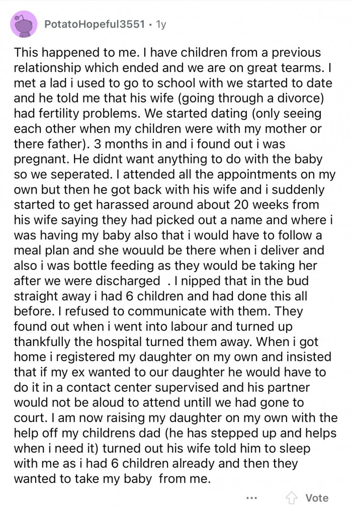 We live in a world where the potential threat of being targeted by a stranger or someone we know is always present. While it's not healthy to jump to the worst-case scenario, it's wise to prioritize safety. As Dr. Madeline Levine, a child psychologist, states, "Taking proactive measures can help mitigate risks and ensure that you feel secure in your environment." By implementing necessary precautions, you can be prepared should a threat arise. It's crucial to recognize that some individuals may attempt to take what is rightfully yours, and being vigilant is essential. People often resort to manipulation and deceit to achieve their desires, and as Dr. Helen Fisher, a biological anthropologist, notes, "Avoiding toxic individuals is the best strategy for maintaining your well-being." A Redditor who later deleted her account shared her experience of discovering her pregnancy after a three-month relationship ended. The child's biological father reconciled with his ex, who became obsessed with appropriating the Redditor's pregnancy. The community had varied reactions to her post, reflecting the complexities of such interpersonal dynamics.