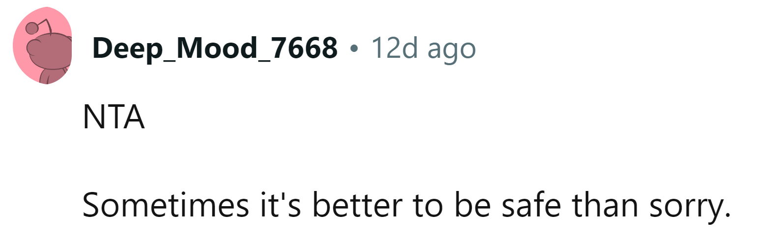 The OP says she feels bad for not listening to him, but she genuinely thought there was something wrong.