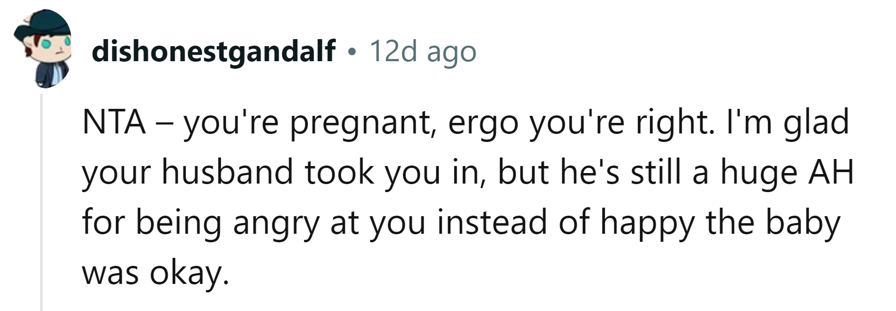 When they arrived at the hospital, the OP was checked over, and thankfully, everything was fine. On the way home, her husband expressed his anger at her for the way she had behaved.